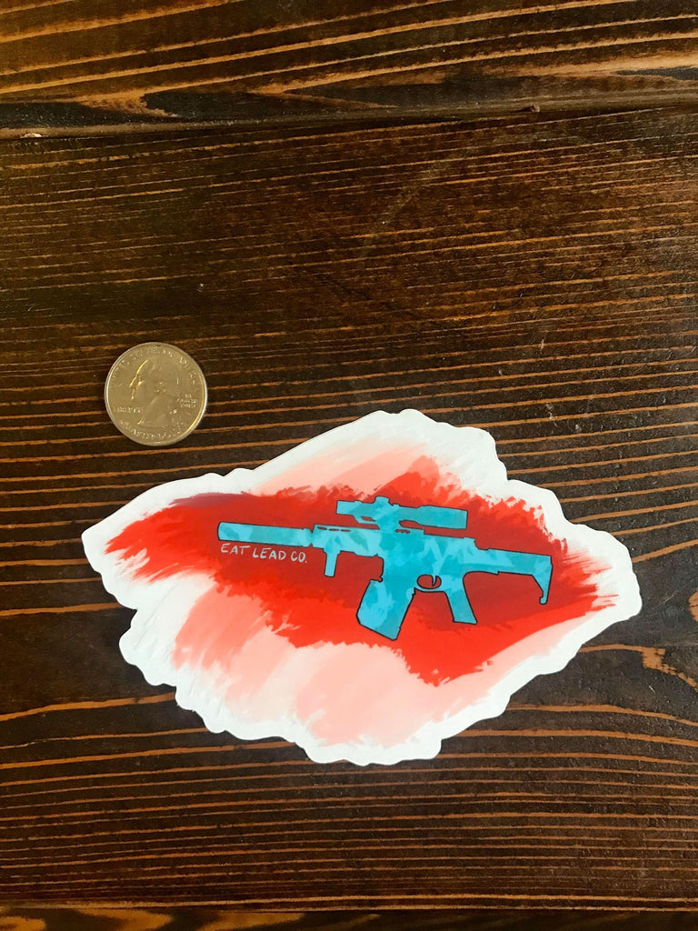 High quality sticker on clear background. Text reads "Eat Lead Co." 5" x 3.25"